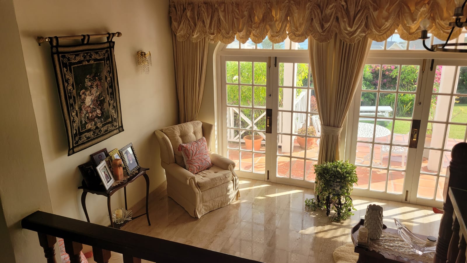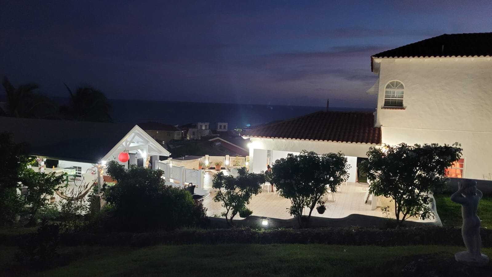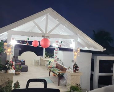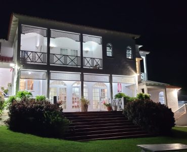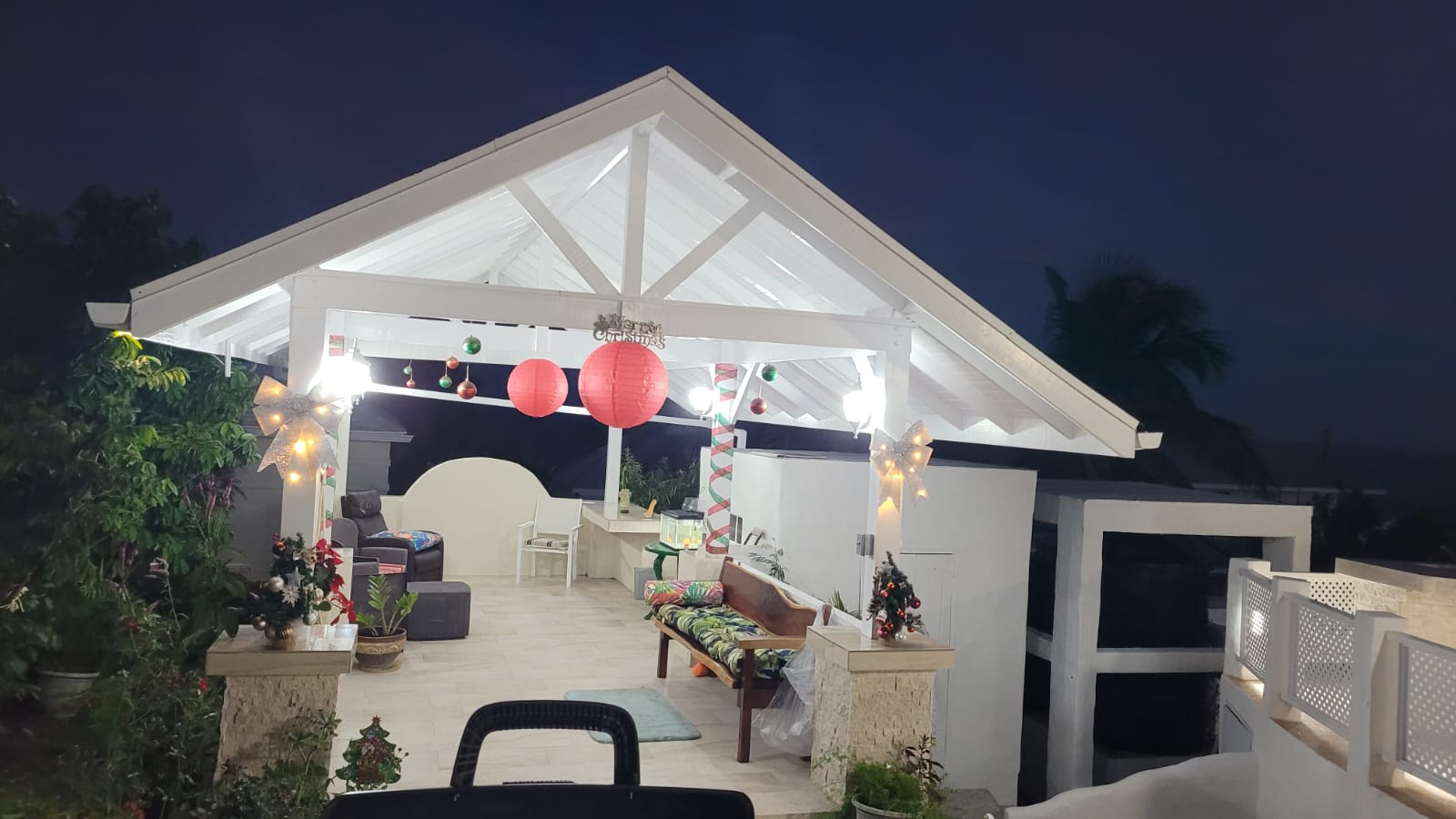 Outdoor living is a highlight of the property. The estate includes a spacious double-car garage and an expansive entertainment deck overlooking the Atlantic Ocean, complete with a beautifully designed outdoor bar. The open courtyard and custom pergola create a welcoming setting for gatherings, dining, or simply enjoying the refreshing ocean breezes. The entire entertainment area has been fully tiled, blending seamlessly with the home’s architectural style.